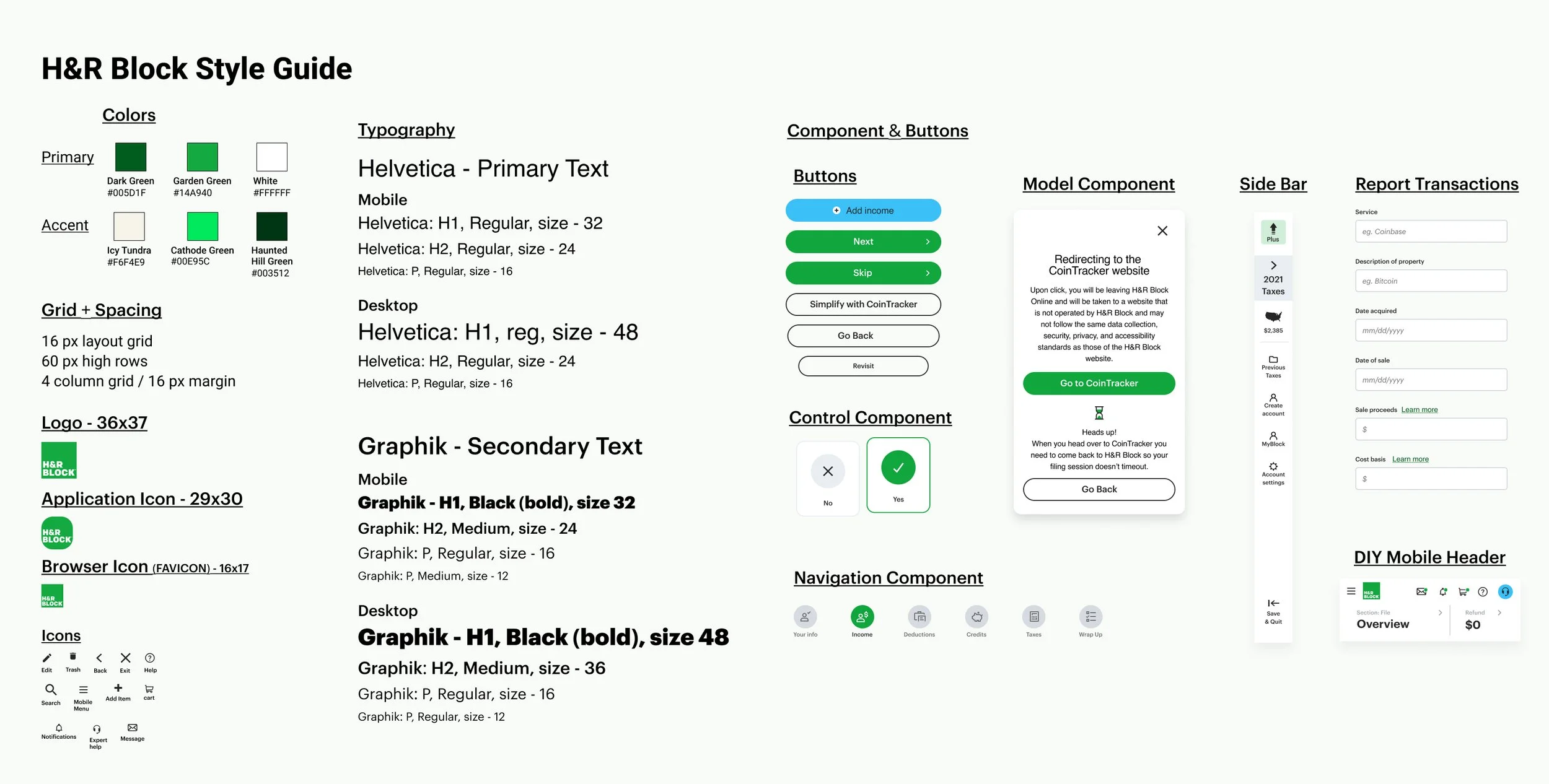 Our team created these high-fidelity screens using H&R's design system and following strict guidelines, as their DIY product was already live. Due to the tight deadline and developer constraints, we couldn't add too many new elements to the product. However, we did create the three main elements required for the app: the "Simplify with CoinTracker" CTA, the redirecting CoinTracker modal, and the Skip CTA.